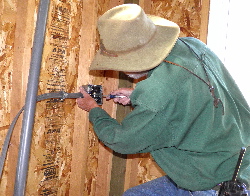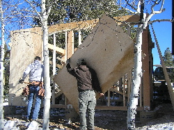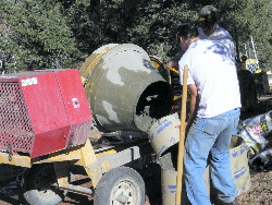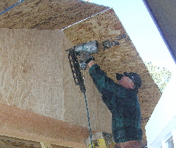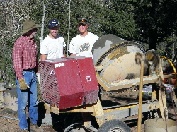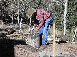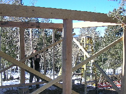 |  11/29 work resumes as Shawn & Greg start above ground work. Greg plumbs a corner post.