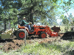 |  Mike digs power line trench from Machinery Barn to Cabin