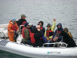 |  Jodi, our Captain, taking us ashore in skiff for our 1st Hike