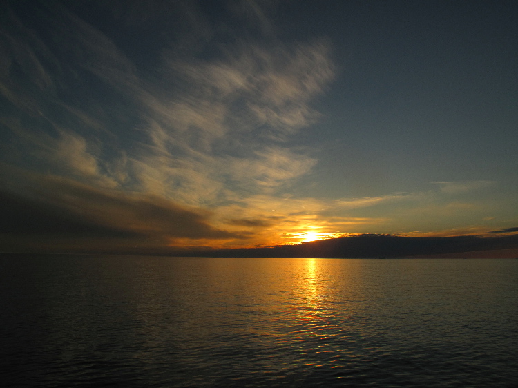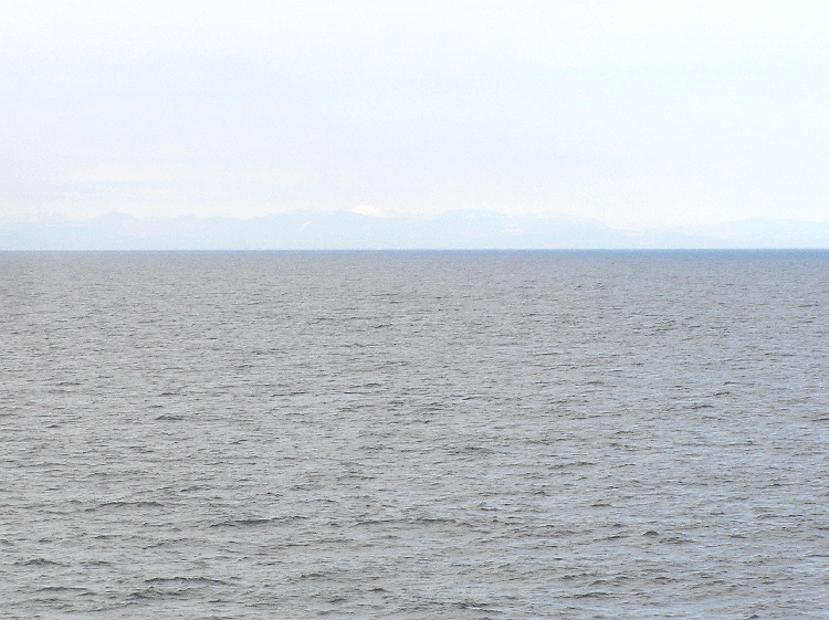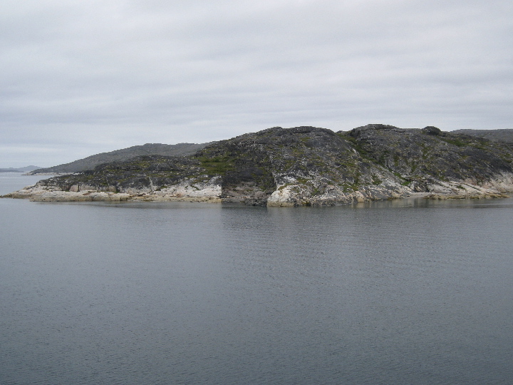 ![]() Soon to leave Disco Bay and Greenland - pointed W to the not-setting sun | ![]() Leaving Greenland across the Davis Davis Strait - is that the Ice Cap back there? 8/17/10 |