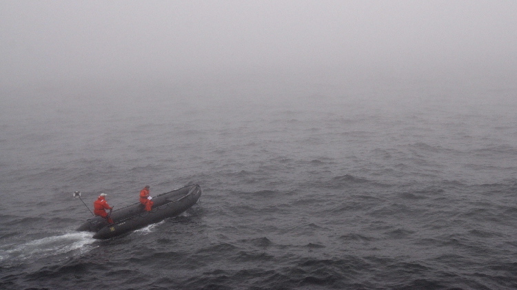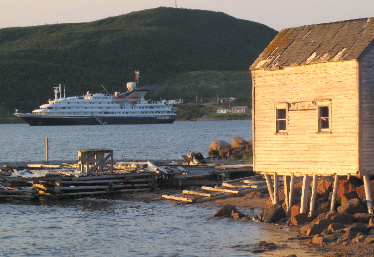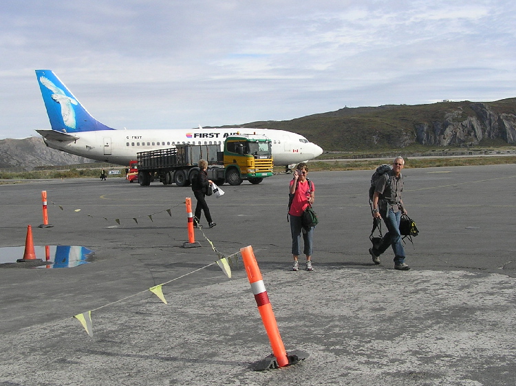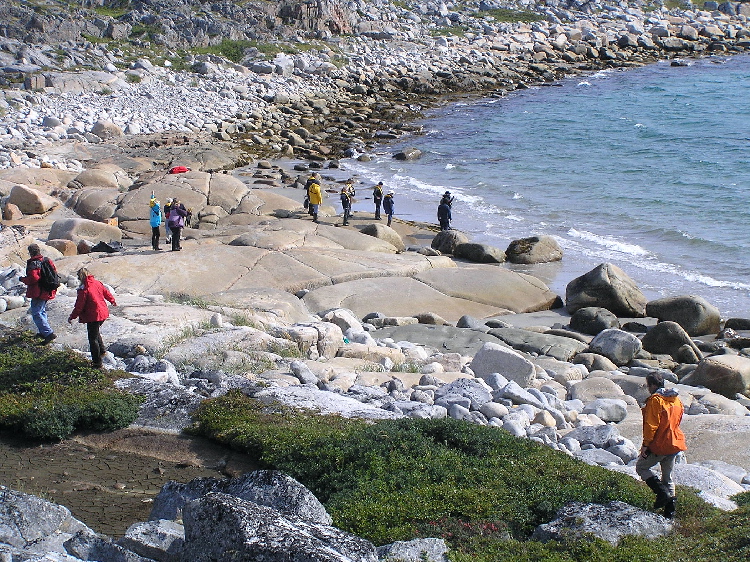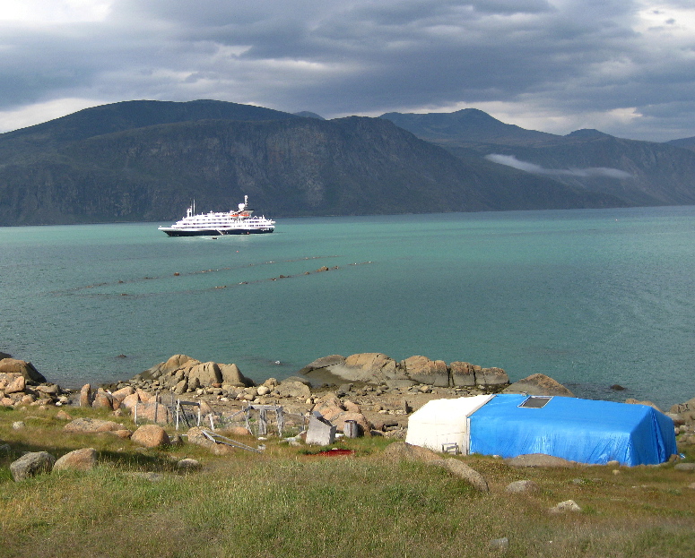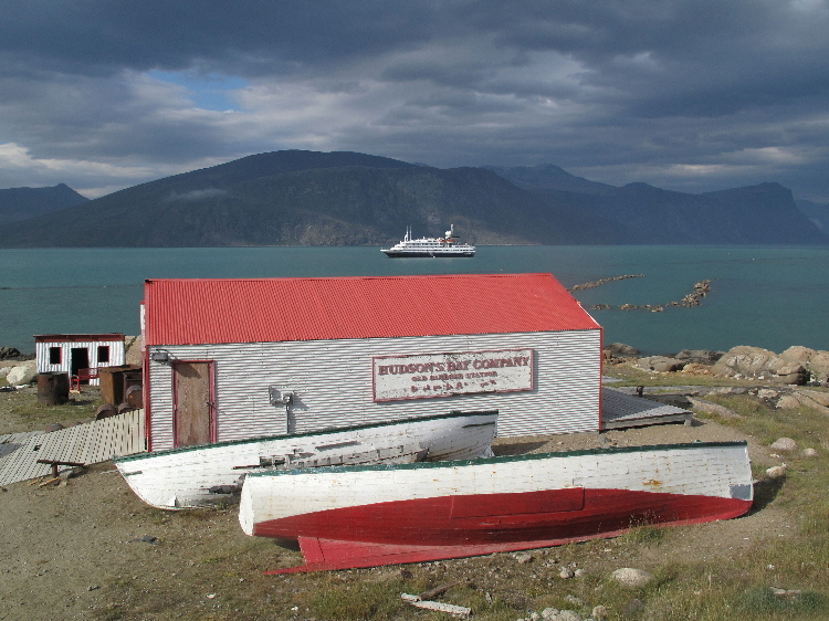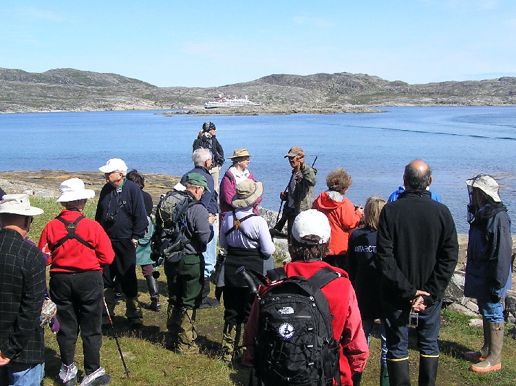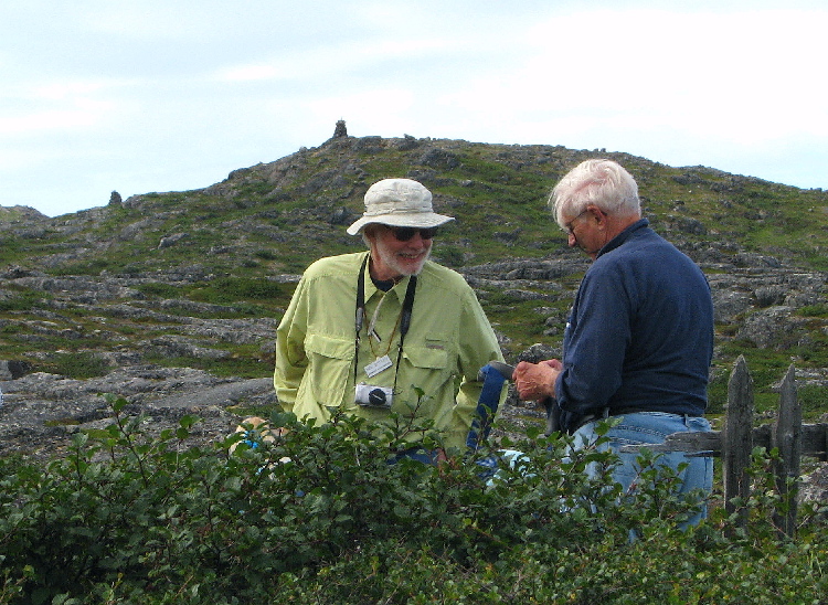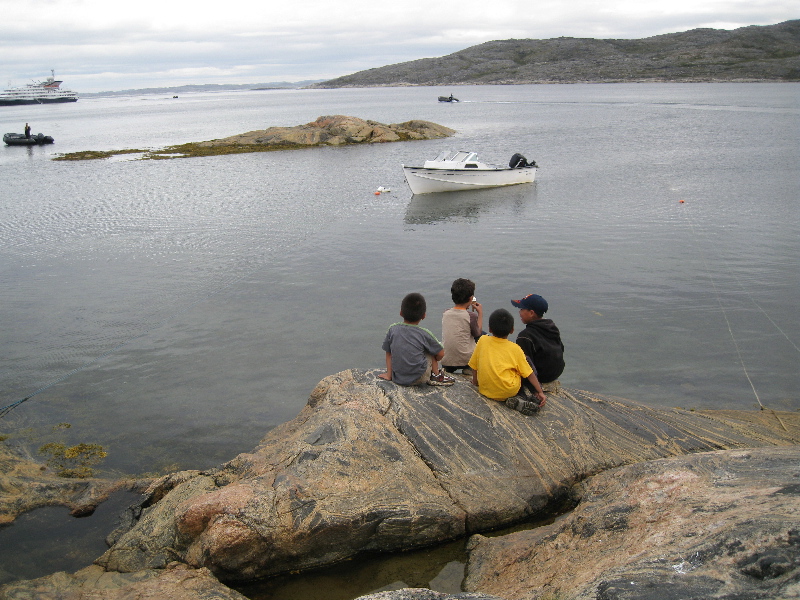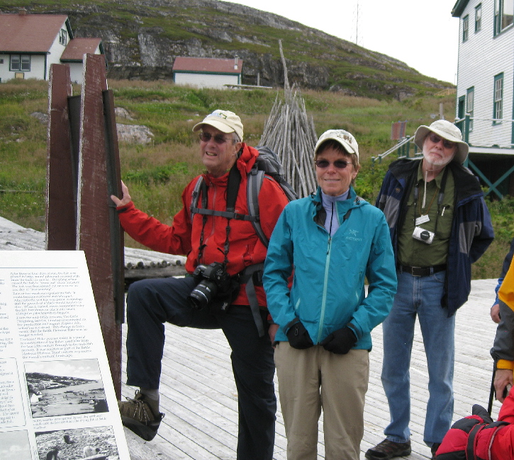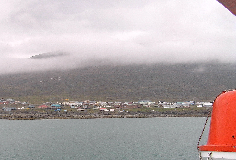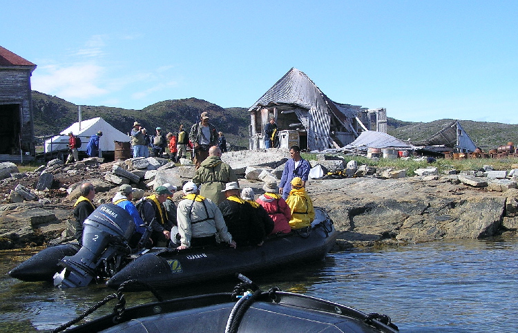 ![]() Expedition Leader checked to see if we could see Monumental Island to view Polar Bears & other critters - too foggy though | ![]() Hebron, Labrador - a now shut- down Moravian site established early 19th century 8/20/10 Link: Hebron History | ![]() Hebron landing - caretaker couple and 2 boys all armed because of recent bear in the area |
