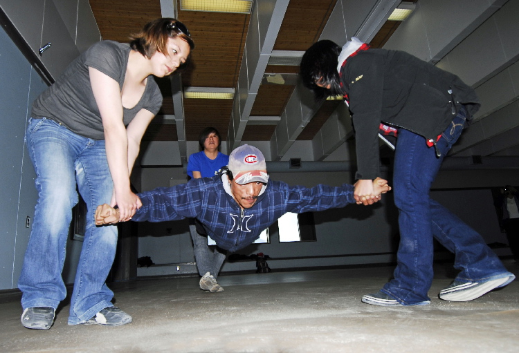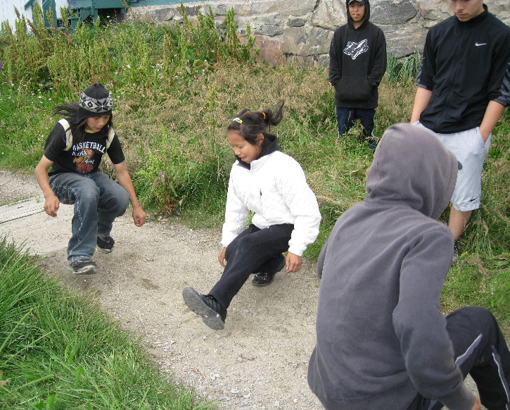 ![]() Pang citizen in meditation hut | ![]() Old Hudsons Bay Company building | ![]() Pang Game - from a full crouch, kick up at the hanging shoe |