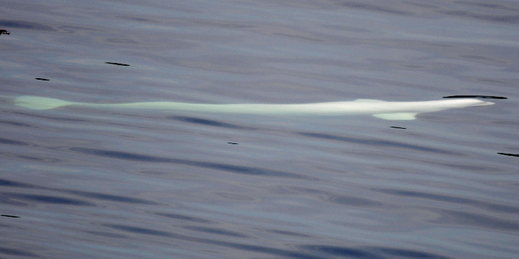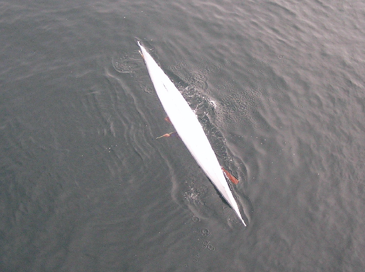 ![]() Relaxing in our "really roughing it" cabin - nice socks . . . | ![]() Whale in Gulf of St. Lawrence/ St. Lawrence River 8/25/10 | ![]() Baluga just below the surface |
