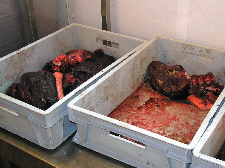 ![]() Neil helps local fish cleaners | ![]() Nice whale near Zodiac, lousy photo | ![]() Two humpbacks near Zodiac |