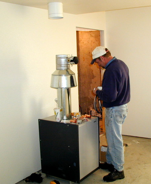 |  GREG STARTS BOILER HOOK UP 12/9/03