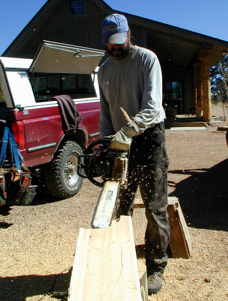 PETE COPING LOGS WITH CHAIN SAW 3/18/04