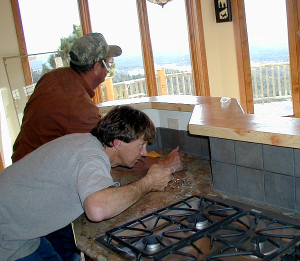 |  PETE & GERALD WORK ON ISLAND COUNTERTOP 3/19/04